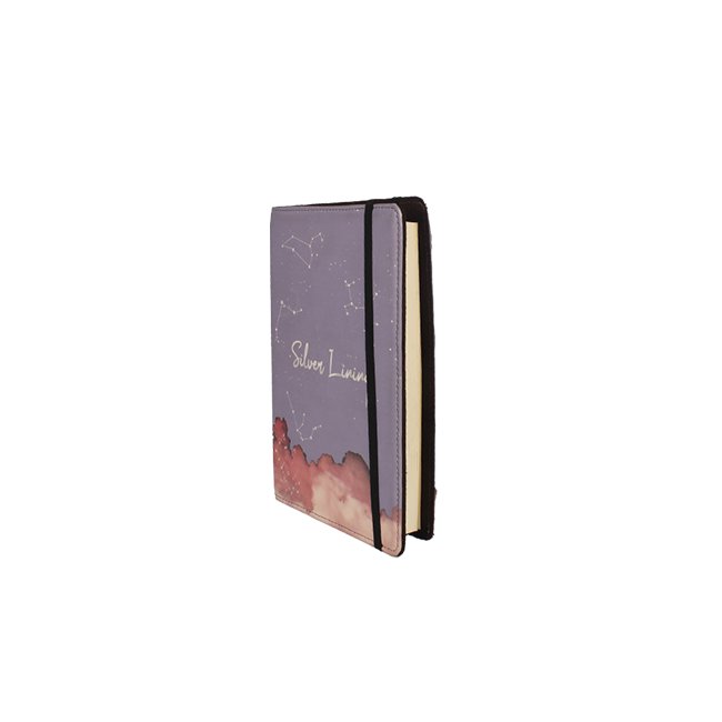 The Silver Lining Journal is inspired by stars, constellations, and dreamy clouds, offering a celestial touch to your journaling experience. Crafted from premium leather with a printed cover, this A5 journal is both durable and stylish, perfect for capturing your thoughts and ideas. Personalization options are available, allowing you to make it uniquely yours. Its compact and durable design makes it easy to carry and ensures it will last through your literary journey.