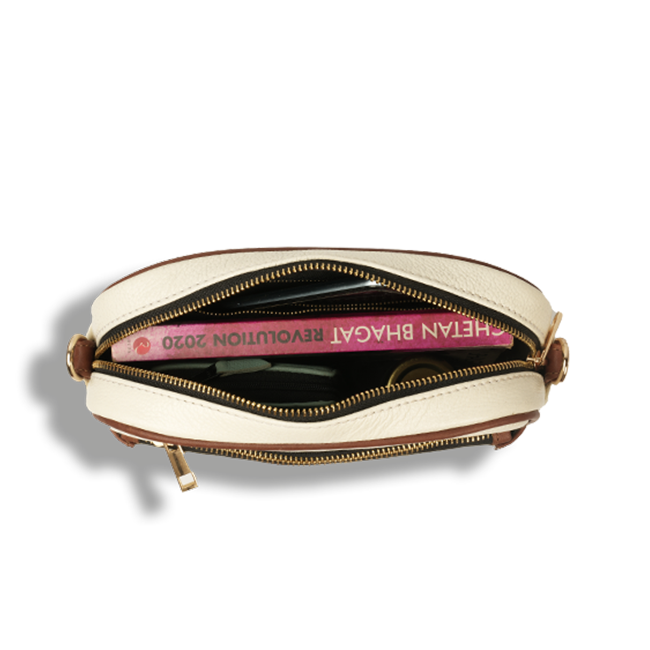 Elevate your style with Luna White Sling Bag. It is a perfect blend of brown and white leather. Crafted from top grain leather, this bag exudes luxury and durability. Premium Quality : Made from Top Grain leather, this sling bag boasts a soft yet sturdy texture that ages beautifully, developing a unique patina over time.