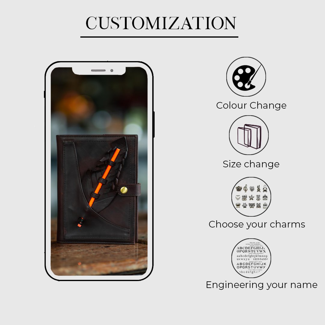 Get complimentary personalisation on the journal with your initials (up to 3 letters), which will be embossed on the bottom right corner of the leather cover. (Optional)
