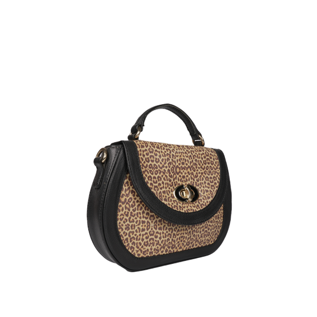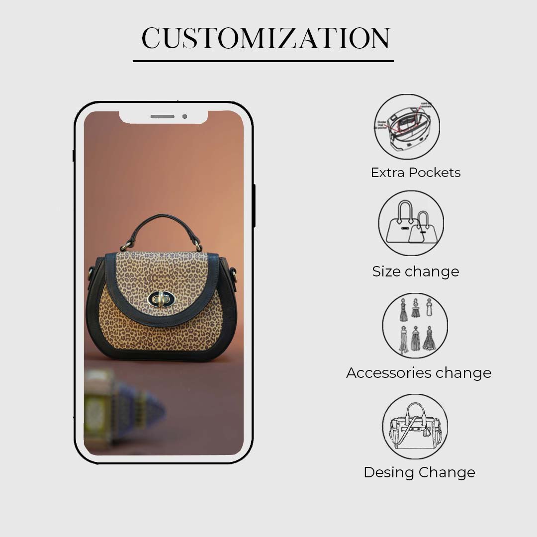 The Savannah Chic Leopard Print Handbag is a unique blend of style and functionality. This handbag-sling bag hybrid is crafted from pure leather with a bold animal print pattern, complemented by black leather accents and golden trims for an added touch of sophistication. Designed for women who appreciate chic and practical accessories, this genuine leather handbag is perfect for any occasion.